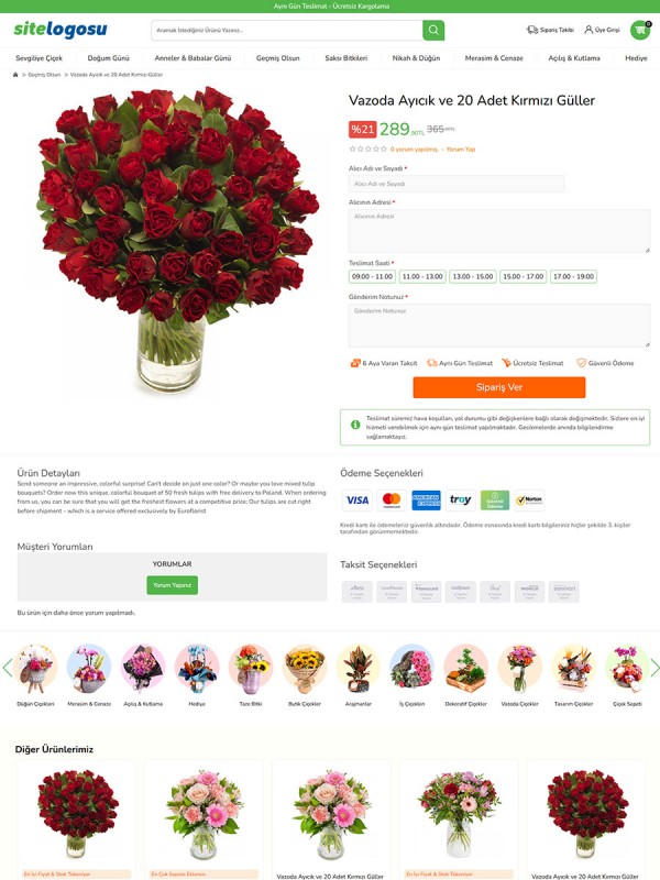 Opencart çiçek satış teması ile çiçekçilik sektörü ürünlerinizin satışını yapabilirsiniz. Opencart çiçek satış teması teması sadece tema olmayıp, paket sistemdir. Temalarımız optimize edilmiştir. Opencartın varsayılan sorunlarından arındırılmış ve kullanıcılar tarafından test edilmiştir. Basitleştirilmiş yönetim paneli kullanımı son derece kolaydır. Aynı zamanda ücretsiz destek sağlanarak kullanım bilgisi verilmektedir. Satın almış olduğunuz temalarda renk değişikliği yapılması istenildiği taktirde tarafımızdan bu değişiklik yapılabilmektedir. Bunun dışında temada istenen küçük değişiklikler ve istekler kurulum sırasında tarafımızdan da ücretsiz yapılabilmektedir. Tema ücretlerimiz tek seferliktir. Aylık, yıllık ödeme yoktur.